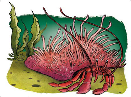 La anémona Calliactis parasitica y el cangrejo