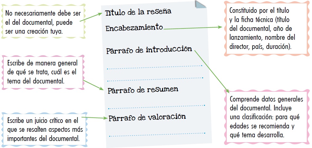 5. Pídele a un compañero que lea tu reseña y valore si cumplió su propósito: presentar información sobre el documental que elegiste.