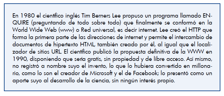 - Discute con dos compañeros lo que opinas sobre la información que leíste de Tim Berners Lee. Toma nota de sus comentarios y escribe las conclusiones a las que lleguen.