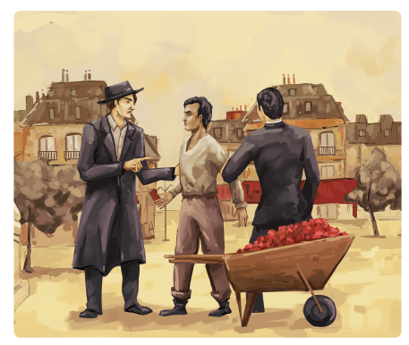 Un joven que viene del mercado de Buci avanza hacia el cruce. Tiene veinte años, viste miserablemente, y empuja una carretilla llena de flores: es un joven argelino, que vende flores a escondidas, como vive.