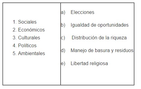 1. Relaciona los asuntos de interés colectivo con el rubro correspondiente: