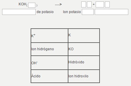 a) ac, K, +, OH, -, Hidróxido, Ion, hidroxilo.